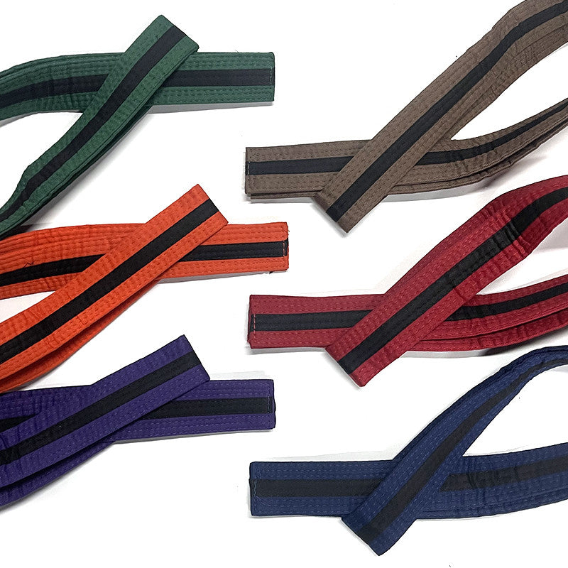 Double Wrap Martial Arts Rank Belt for karate, taekwondo and jiu jitsu. Made with high quality materials to keep the colors vibrant and consistent. Double wrap around for an authentic martial arts feel. 1.75 inches wide with 9 rows of stitching.